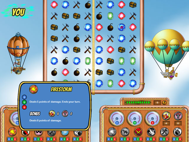 Play as the intrepid Bret Airborne and help Doctor Altus to fight his evil twin brother and his minions in a colorful steampunk world filled with puzzles, duels, and challenging single-player campaigns with player-selected levels of difficulty. As you board a hot air balloon, you'll fight a series of the villain's lackeys and take on the main bad guy himself to save the day. This is one exciting Match-3 adventure certain to keep you up in the air for hours!